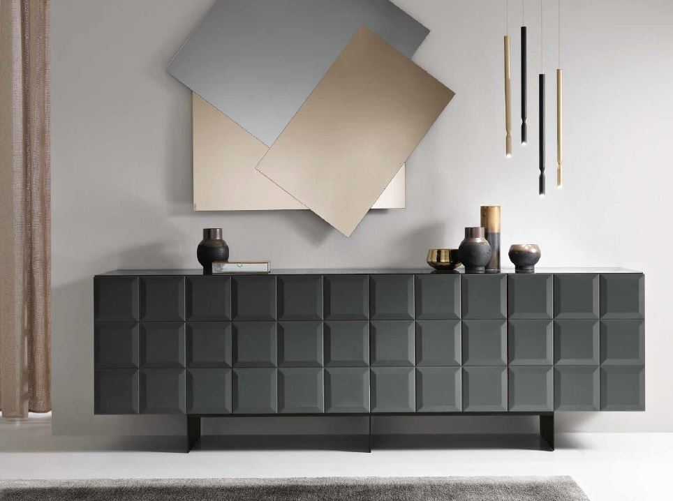 CAPODARTE OFELIA 240 ANTHRACITE SIDEBOARD WITH SMOKED GLASS TOP Sideboard with lacquered MDF doors and melamine body.smoked mirrored glass top