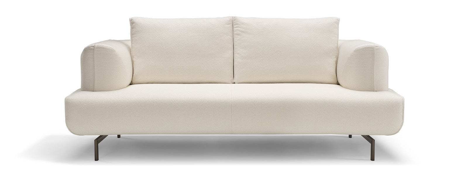 Who is a big hug that invites you to indulge in relaxation". This phrase describes the sofa shown in the image, emphasizing its comfort and inviting nature.